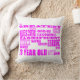 Fun pillow for a new teenage girl. Good size and quality and hot pink writing goes with her decor. Clear and ledgible, good color.