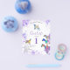 Its her first birthday celebrate with this fun collection of colorful watercolor splash goat illustrations in vibrant pink, purple, blue, orange, yellow and aqua. A cute farm animals 1st birthday party invitation with baby goats and goats standing on goats. This fun party invitation is easy to personalized to create a unique party invitation suitable for children and adult goat lovers. Colorful purple themed psychedelic goat original illustrations by artist Catherine Sweetman