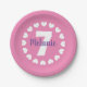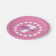 Girl's 7th Birthday party plates with age number. Cute girly pink design with hearts. Also nice for other ages. Create them for daughter, granddaughter, cousin etc. Disposable party supplies for children. Elegant brush script typography template for name.