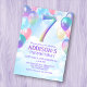 Girls 7th Birthday Rainbow Balloons Invitation