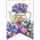 Add a touch of elegance and whimsy to your tea party decor with our beautiful bunting flag decoration! Featuring the same lovely teapot design as our invitations and other party supplies, this bunting can be personalized with the name of the birthday girl! Hang it over the tea table or use it to decorate a wall for a charming and memorable touch. Your guests will be delighted with this lovely addition to your tea party decorations.