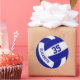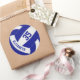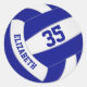 These custom volleyball themed round stickers for girls or boys feature a blue and white volleyball upon which you can customize the player's name & jersey number in a varsity letter style font - by katz_d_zynes
