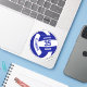 This custom volleyball themed vinyl sticker features a blue and white volleyball upon which you can customize the player's name & jersey number in a varsity letter style font - by katz_d_zynes | search ALL katzdzynes' blue & white volleyball team colors gifts >>>> https://www.zazzle.com/store/katz_d_zynes/products?cg=196840175015047850