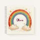 This personalized notebook features an attractive watercolor rainbow with glowing golden stars and fluffy clouds.