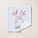 This cute and modern kids bath towel set design features a unique pink axolotl pattern and can be personalized with your girls name. The quirky gender-neutral pattern also includes flowers, river plants, and waves. The perfect salamander-themed gift for your child!