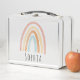 This personalized girls lunch box features a pink watercolor boho rainbow, and space to add a name in beautiful typography. The perfect colorful and whimsical design for any kid or rainbow-loving adult, a great addition to school supplies!