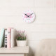 Girls Cute Pink Boho Rainbow & Name Kids Round Clock
