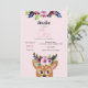 Girls Cute Pink Deer Floral 1st Birthday Flowers Invitation