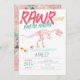 Girls Cute Pink Dinosaur Dig Fossil Kids Birthday Invitation