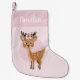 Girls Cute Pink Floral Deer & Name Kids Small Christmas Stocking