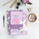 This cute and magical girls birthday or baby shower guest book features a unicorn cartoon, heart, rainbow, planet and stars, and can be personalized with a name and the date of your party. The perfect purple addition to your birthday party or baby shower.