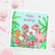 Fun and colorful dinosaur birthday napkins featuring cheerful pink, orange, and brown dinosaurs surrounded by tropical leaves and flowers. A playful touch for a girl’s prehistoric-themed celebration — perfect for adding personality to the party table while coordinating with matching dinosaur party supplies.