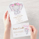 Girl's Elephant & Flower Watercolor Baby Shower All In One Invitation.