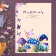 Girls Fairy Purple Mushroom Butterfly Birthday Invitation