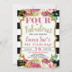 Girl's Fall Floral Four & Fabulous 4th Birthday Invitation
