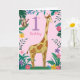 Pretty floral giraffe first birthday greeting card... just click personalize to make your own