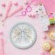 Girl's First Communion Dusty Blue Floral Bow Paper Plates