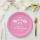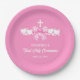 Girl's First Communion Pink Gingham Bow Paper Plates