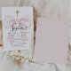 Girl's First Communion Pink Toile Bow Cross Invitation