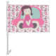 Girls Going Places products including gift bags, gift boxes, body pillows, throw pillows, cheese boards, candy favors, and more with a cute, fun, cheery, girly, whimsical design of blue, pink, and white featuring little girls in pink dresses, pink cars, and blue fancy circles with hearts!