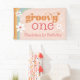 This girl's birthday party banner features a fun 70's style theme featuring the retro text "groovy one". The design is accented with boho colors, cute white daisies.