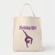 Girls Gymnastics Birthday Girl Tote - Says "Birthday Girl" in a fancy decorative font, has a sparkly purple gymnast doing a backbend kickover skill!