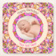 Girls Happy Birthday Summer Pink Spring Green Star Custom Age Round Paper Coaster. A pretty geometric star pattern for a girl’s, women’s and ladies birthday celebration or wedding anniversary. Personalize it by changing the photo and the text at the bottom front. Your own square or circular photo will work best. Dopamine party decor for all ages, from a new baby to a quinceanera to a sweet 16 to the flirty thirties and beyond. Celebrate the good times!