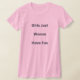 My overall review is that the T-shirt is nice, it fits true to size however the font is significantly smaller than advertised and you can't read it. The printing is unreadable and there is a strain to read it. It does not look like the advertised product. Maybe the shirt color is darker or a larger more visible font should have been used. Photos with and without flash and font is barely legible.