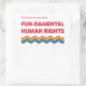 Show your commitment to equality and women's rights with this vibrant white rectangular sticker. The bold, multi-line slogan “Girls just wanna have FUN-DAMENTAL HUMAN RIGHTS” is printed in dynamic red tones, giving a strong yet playful feminist message. Beneath the text, stylized rainbow waves symbolize inclusivity, diversity, and the ongoing fight for justice.