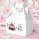 Cute baby shower favor box card featuring an illustration of a pink pumpkin with faux gold glitter, burgundy red flowers, and green foliage. Perfect for a girl's baby shower.