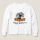 Get your little ghoul ready for Halloween with this adorable girl's long-sleeve shirt! Featuring a spooky ghost tree with playfully eerie branches and a row of grinning pumpkin lanterns, this shirt is the perfect blend of cute and creepy. Made for comfort and style, it's ideal for trick-or-treating, Halloween parties, or just showing off their spooky spirit. Spread some Happy Halloween cheer with this festive and fun top!