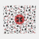 This cute soccer themed fleece blanket for girls features a randomly arranged pattern of black and white soccer balls in varying sizes turned every which way with scattered tiny red and pink confetti hearts on a white background - player name in an "autograph" style font and large monogram in a varsity-letter style font are customizable - by katz_d_zynes