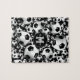 This girls' soccer jigsaw puzzle features a pattern of varied size black and white soccer balls on a black background - customize with her name and monogram - by katz_d_zynes