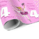 Birthday wrapping paper in a cute pink ballerina dancing girl polka dot and star design. Personalize this girlie birthday paper with your own name and age. Currently reads Happy Birthday Tanya 4 today. Perfect for wrapping a special fourth birthday gift. Uniquely designed by Sarah Trett.