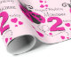 Birthday wrapping paper in a cute pink girls flying ladybug / ladybird and hearts design. Personalize this girlie birthday paper with your own name and age. Currently reads Happy Birthday Marianne 2 today. Perfect for wrapping a special first birthday gift. Uniquely designed by Sarah Trett.