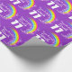 Birthday wrapping paper in a colorful rainbow with stars and purple sky design. Personalize this girls birthday paper with your own name and age 10 to 19. Currently reads Happy Birthday Ursula 11 today. Perfect for wrapping a special 11th birthday gift. Uniquely designed by Sarah Trett.