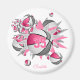 This fun basketball magnet features an "explosion" of varied size pink, white and gray basketballs and gray, pink and white star shapes - a pattern of tiny white polka dots covers the pink star - customize with the athlete's name & jersey number - by katz_d_zynes
