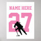 Female hockey player. Personalized Hockey Player Number pink hockey poster. Enter name and number to customize.