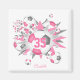 This fun magnet features an "explosion" of varied size pink, gray and white soccer balls and gray, pink and white star shapes - a pattern of tiny white polka dots covers the pink star - customize with the athlete's name & jersey number - by katz_d_zynes