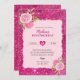 Girls Pink Glitter Floral 10th Birthday Party Invitation
