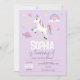 Girls Purple Girly Unicorn Kids 4th Birthday Invitation