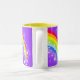 Bright and colourful rainbow "your name" kids mug. Perfect gift for a vibrant child. Mug reads: Melinda or personalise this mug with the name of your choice up to 7 letters. Mug designed exclusively by Sarah Trett.
