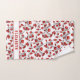 This fun soccer themed towel set features a random pattern of varied size red and white soccer balls turned every which way on a white background - personalize the bath towel & hand towel with her name - by katz_d_zynes