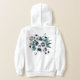 This sporty girl's soccer hoodie features an "explosion" of varied size soccer balls and teal, black and white star shapes - a tiny white polka dots pattern overlies the black star - customize with athlete's name, monogram and jersey number - design is on the back of the hoodie but can be moved to or duplicated on the front - by katz_d_zynes