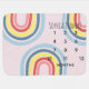 This trendy milestone baby blanket features a gorgeous rainbow cartoon, with a pretty pink background. This modern design also features a place for you to add your baby girl's name, and a monthly growth tracker, the perfect prop for milestone photos during your baby's first year! The perfect whimsical design for your next baby shower.