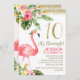 Girls Tropical Foral Let's Flamingle 10th birthday Invitation