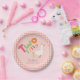This cute and whimsical girls 2nd birthday paper plate design features a silly goose with a pink party hat, and can be personalized with your girls name. The perfect farm design for your little one's second birthday!