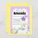 Pretty yellow backside to match the purple and pastel colors of this adorable unicorn invitation.
