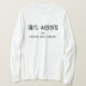 I love this shirt. I had written to the artist asking her if this picture was available on a shirt, and she wrote me back telling me where I could find the shirt. These shirts can be custom made to have a different saying. I loved this saying and went with it. The artist wrote me back later to tell me that she had seen my order go through. How's that for service? Pretty special. It's just as displayed. Perfect!