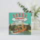 Fabulous Girls Weekend Getaway Party with a reworked postcard of two girls and a guy balancing in a canoe in the bathing suits with a mountain background. Soft focus with slight textures of a vintage postcard. Hand drawn illustration of a retro sign to welcome your gals or guy friends to a great weekend.